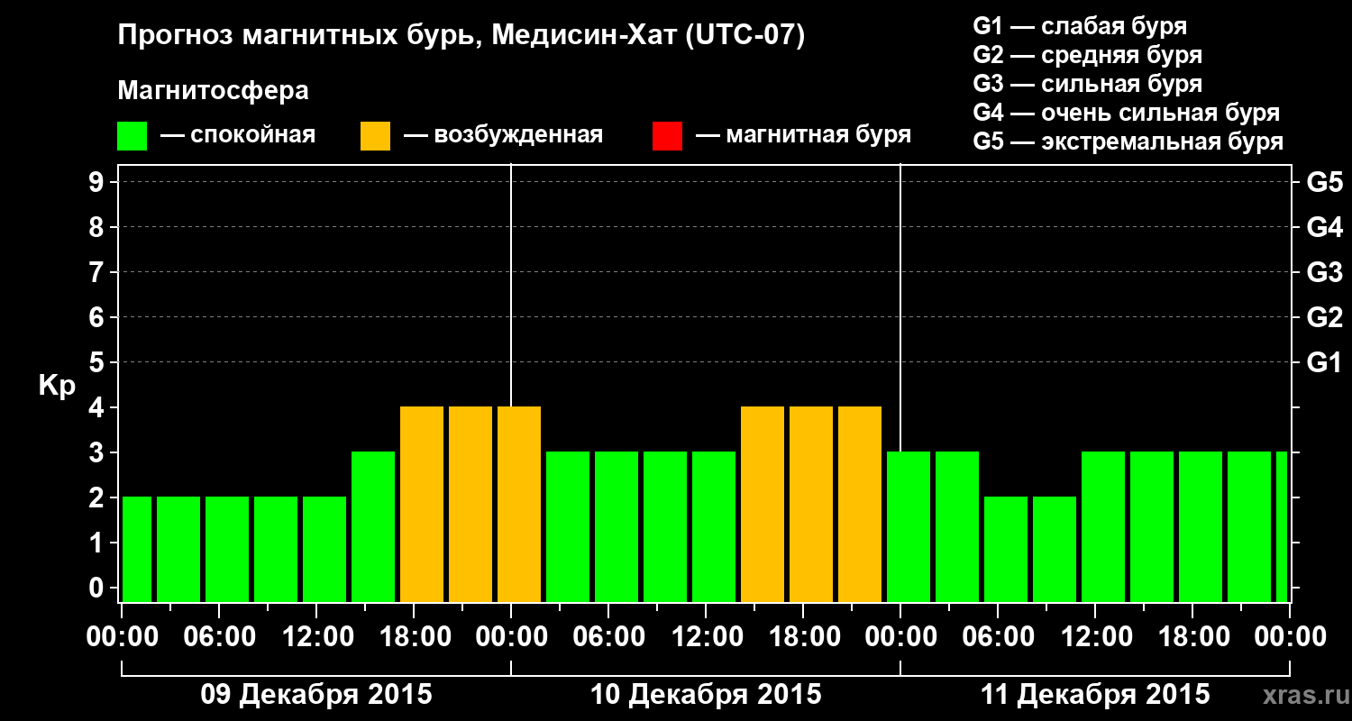 Прогноз магнитных бурь в Медисин-Хате — 9 декабря 2015 года