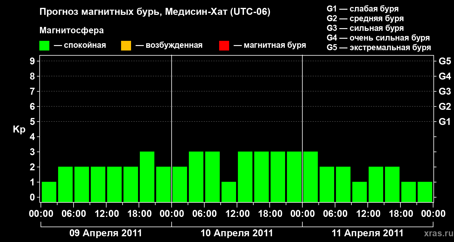 Прогноз магнитных бурь в Медисин-Хате — 9 апреля 2011 года