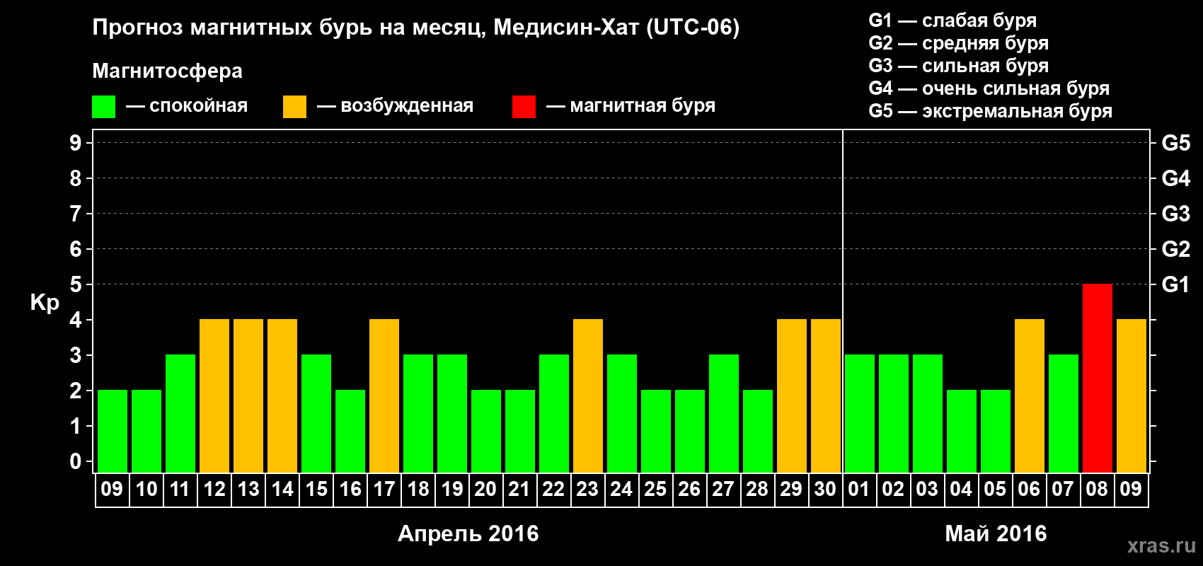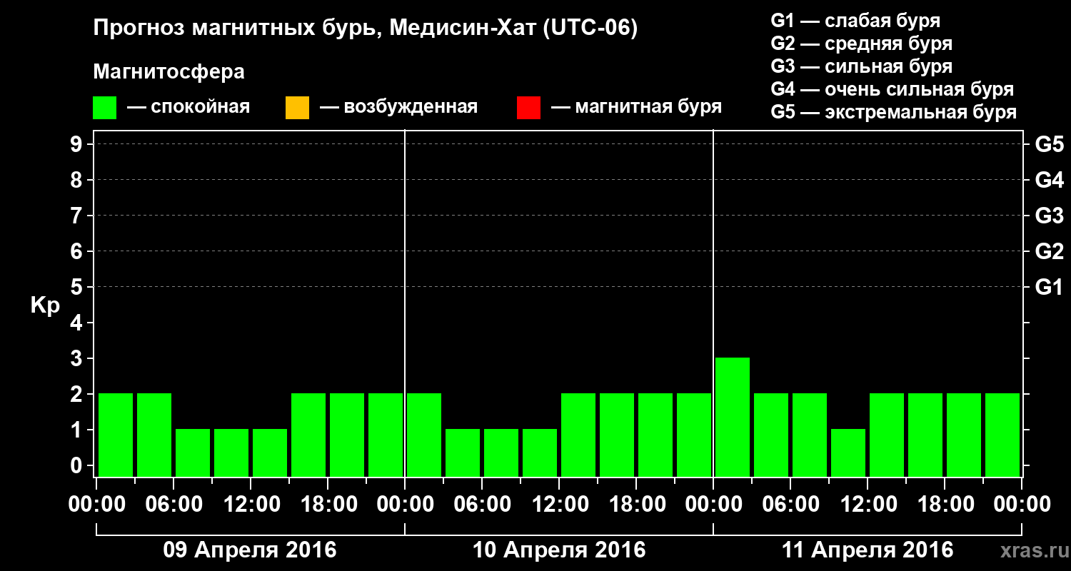 Прогноз магнитных бурь в Медисин-Хате — 9 апреля 2016 года