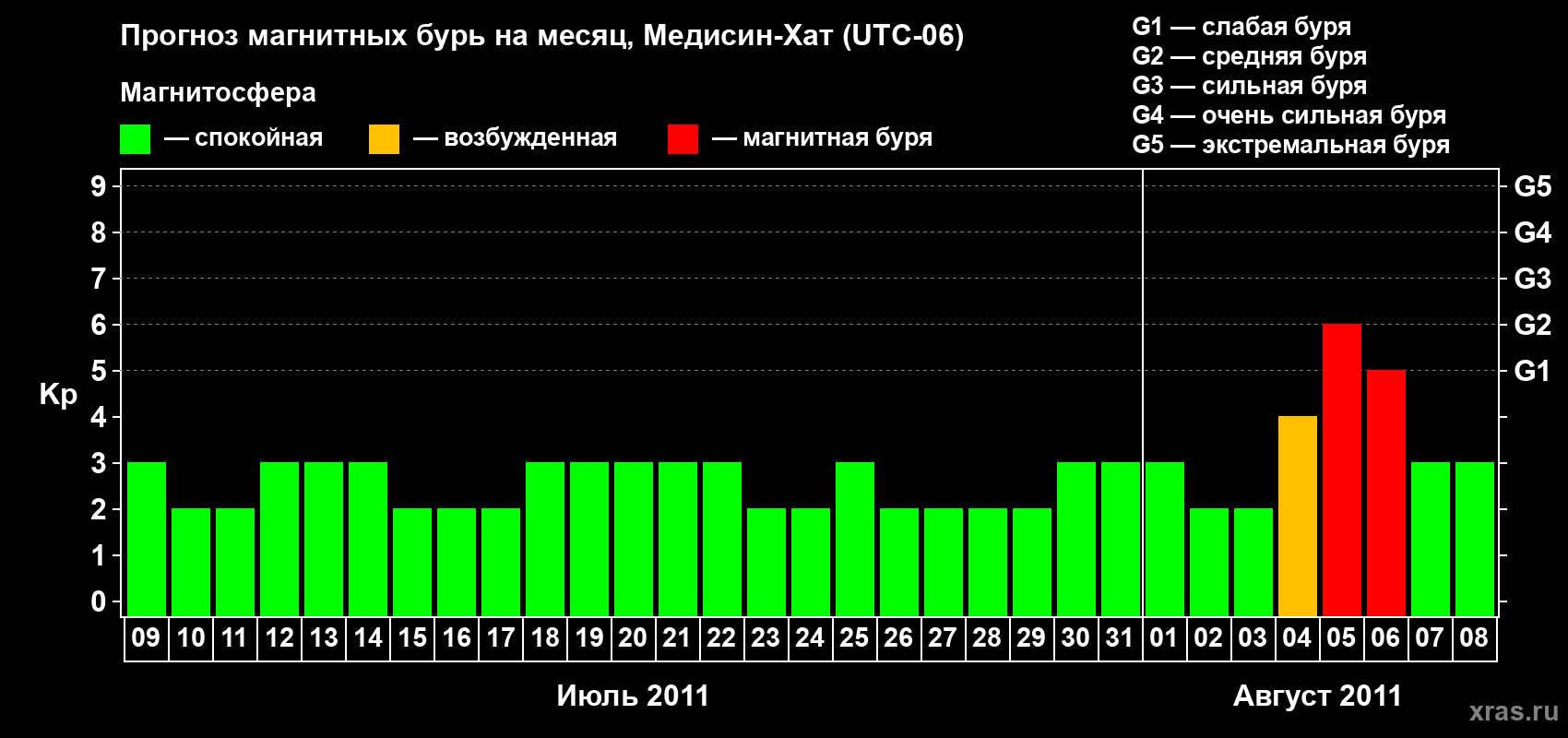 Прогноз магнитных бурь в Медисин-Хате — 9 июля 2011 года