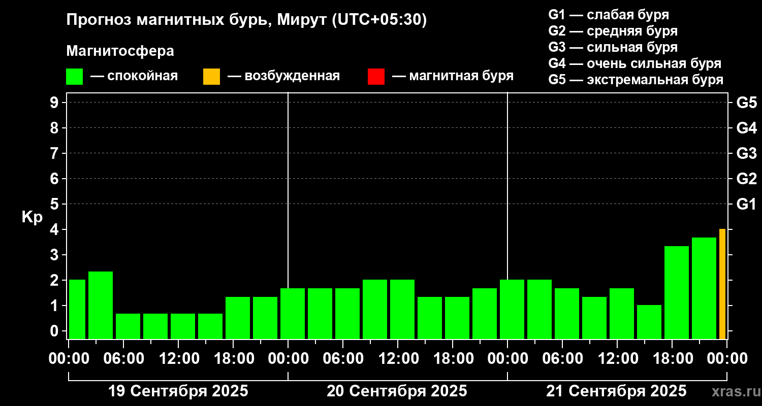 Прогноз магнитных бурь в Мируте на 19 сентября 2025 года