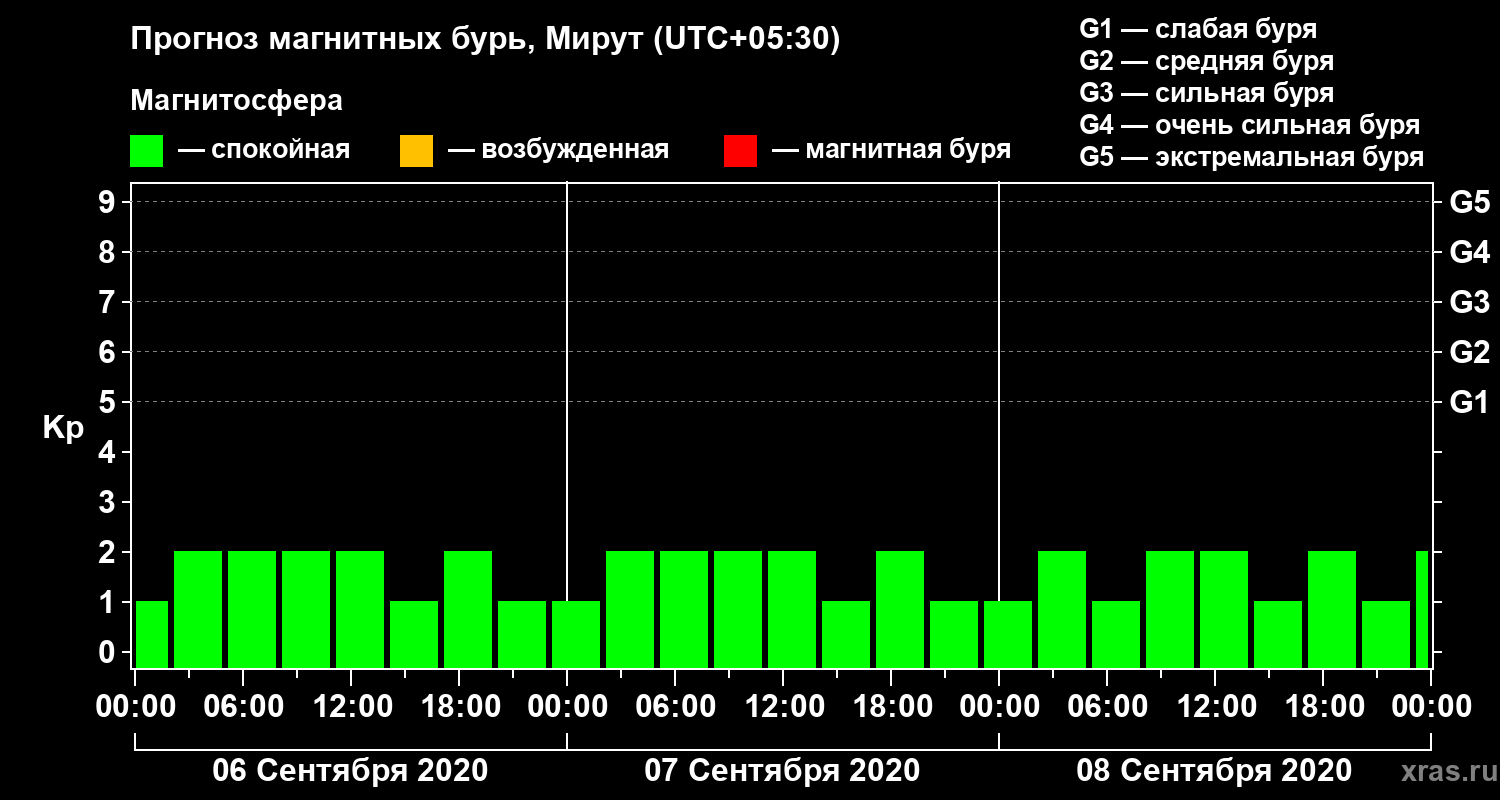 Прогноз магнитных бурь в Мируте — 6 сентября 2020 года