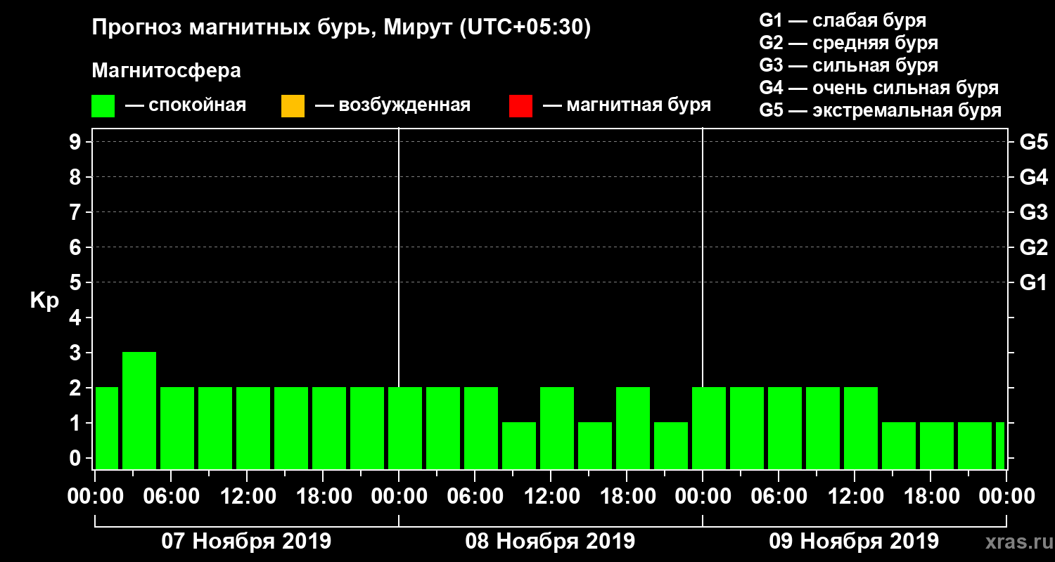 Прогноз магнитных бурь в Мируте — 7 ноября 2019 года