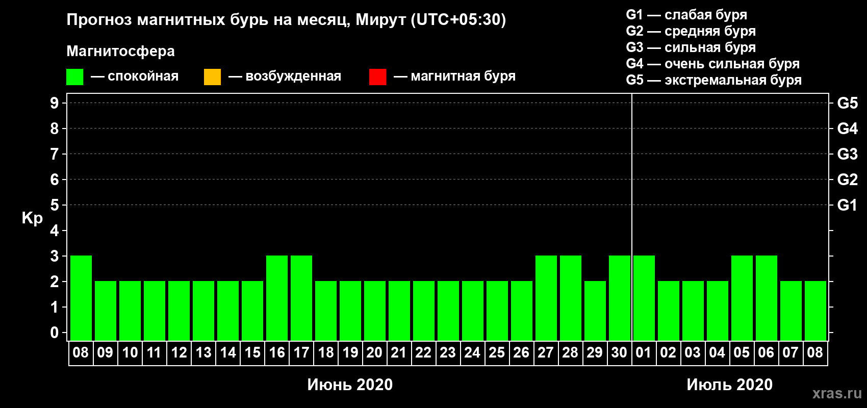 Прогноз магнитных бурь в Мируте — 8 июня 2020 года