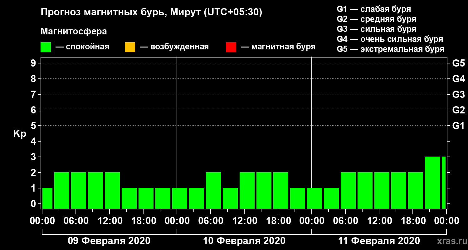 Прогноз магнитных бурь в Мируте — 9 февраля 2020 года