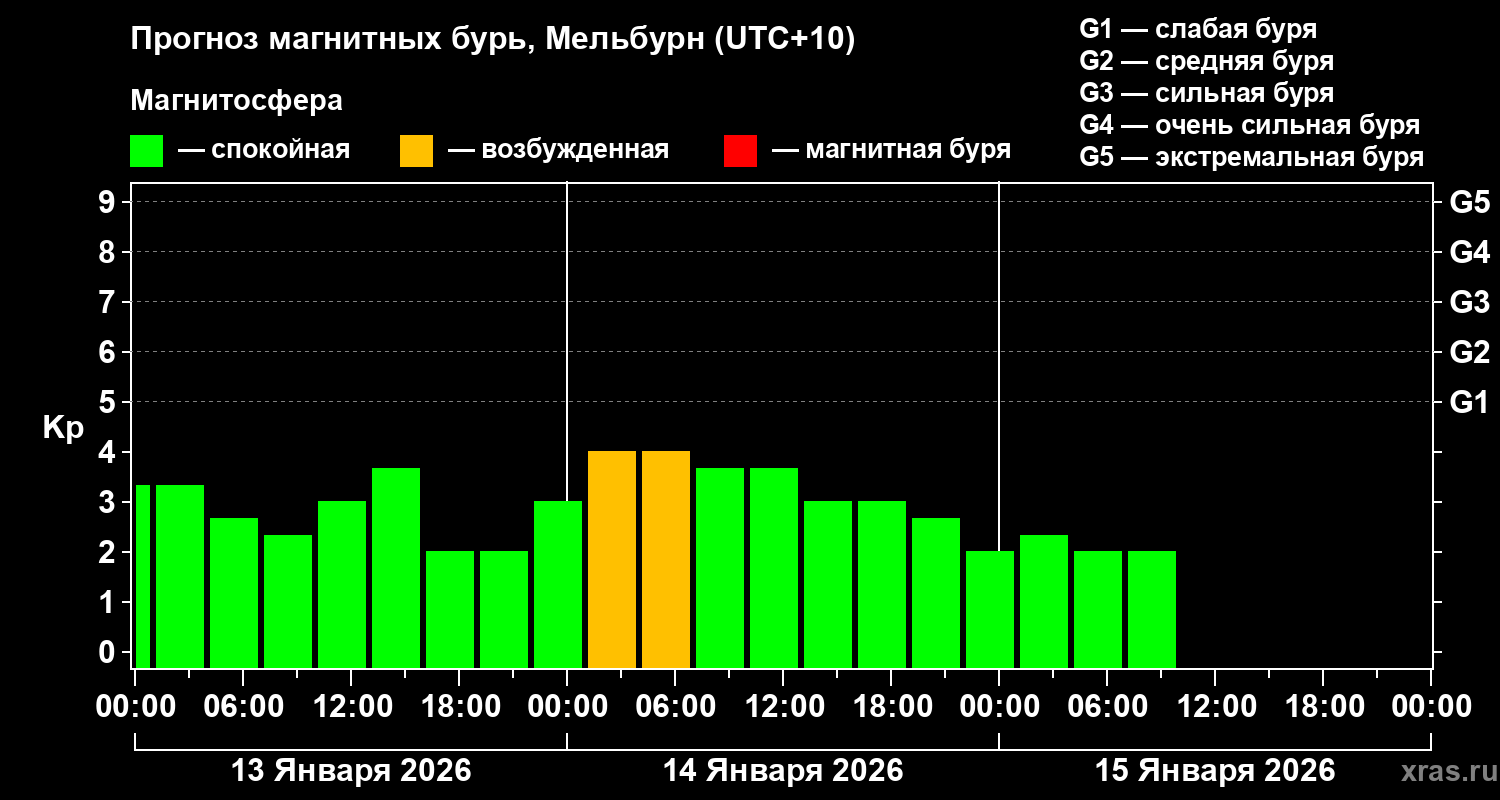 Прогноз магнитных бурь в Мельбурне на ближайшие 24 часа