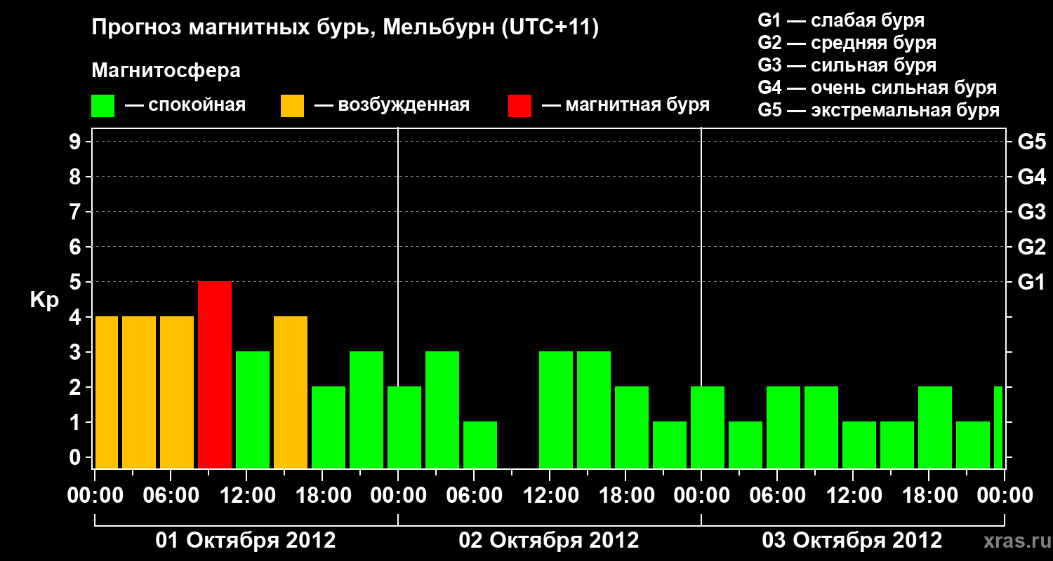 Прогноз магнитных бурь в Мельбурне — 1 октября 2012 года