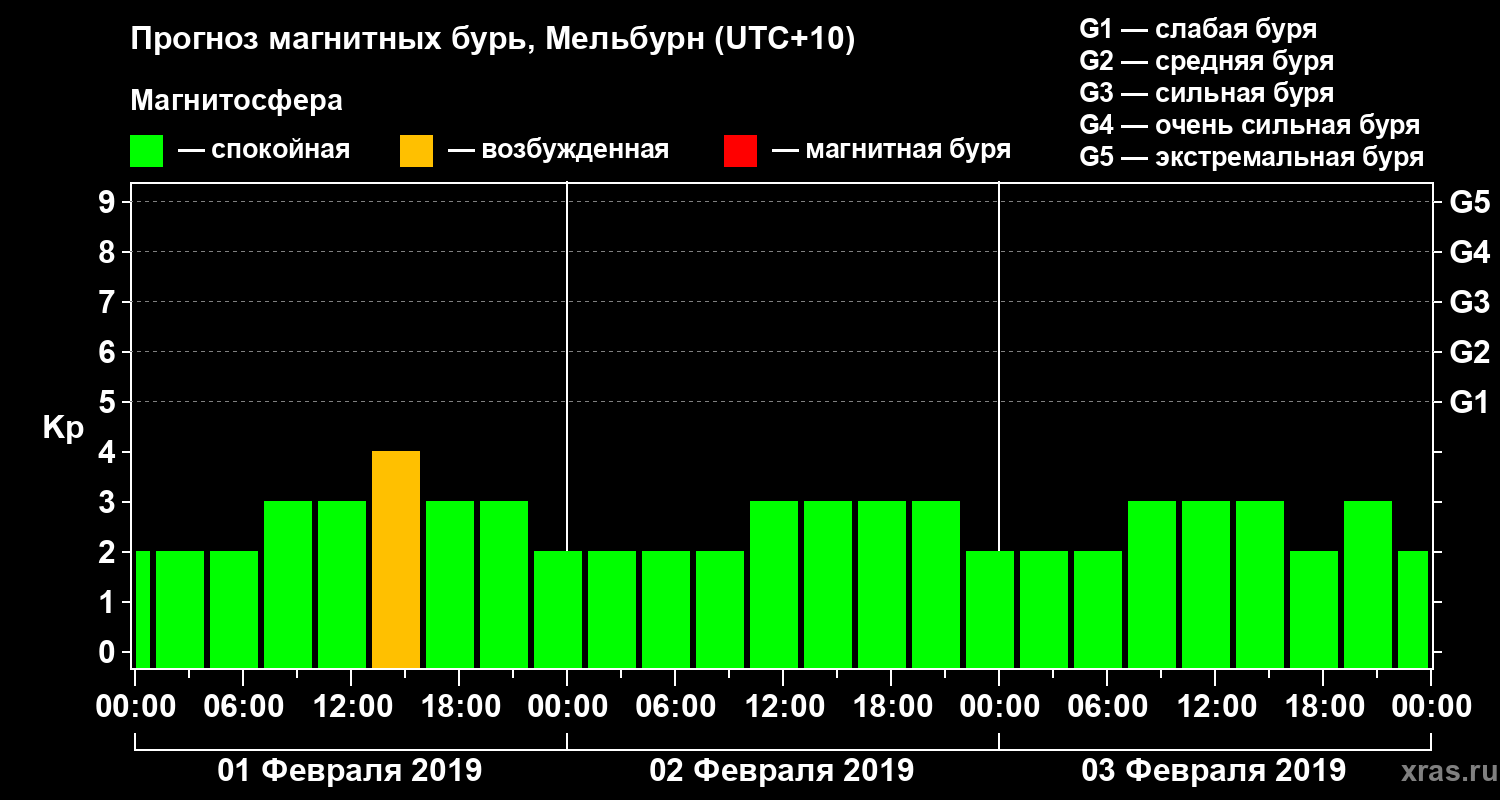 Прогноз магнитных бурь в Мельбурне — 1 февраля 2019 года