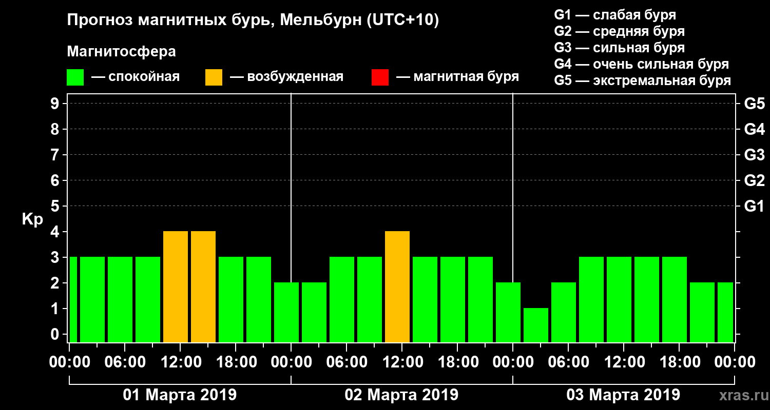 Прогноз магнитных бурь в Мельбурне — 1 марта 2019 года