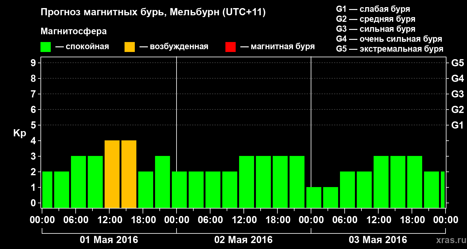 Прогноз магнитных бурь в Мельбурне — 1 мая 2016 года