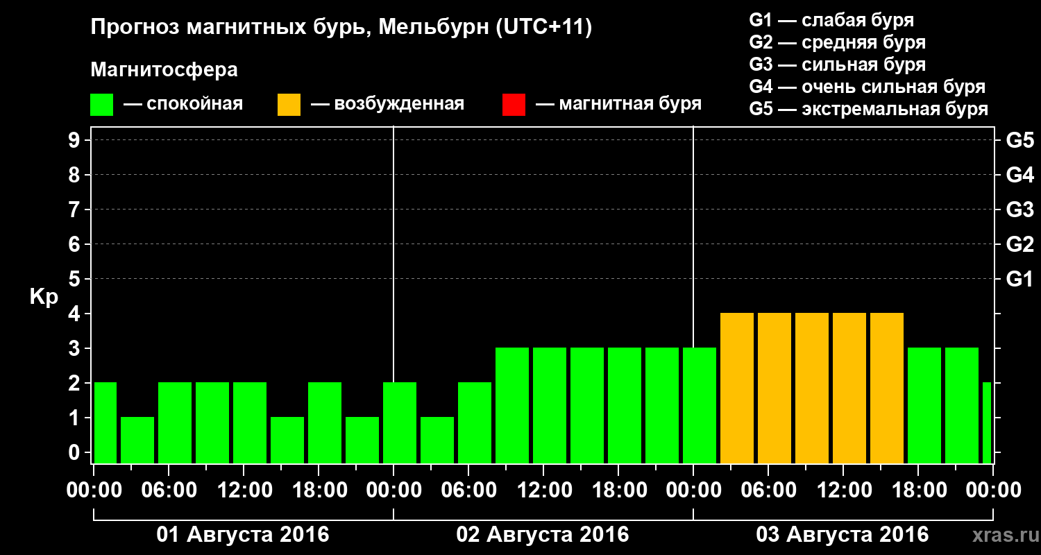 Прогноз магнитных бурь в Мельбурне — 1 августа 2016 года