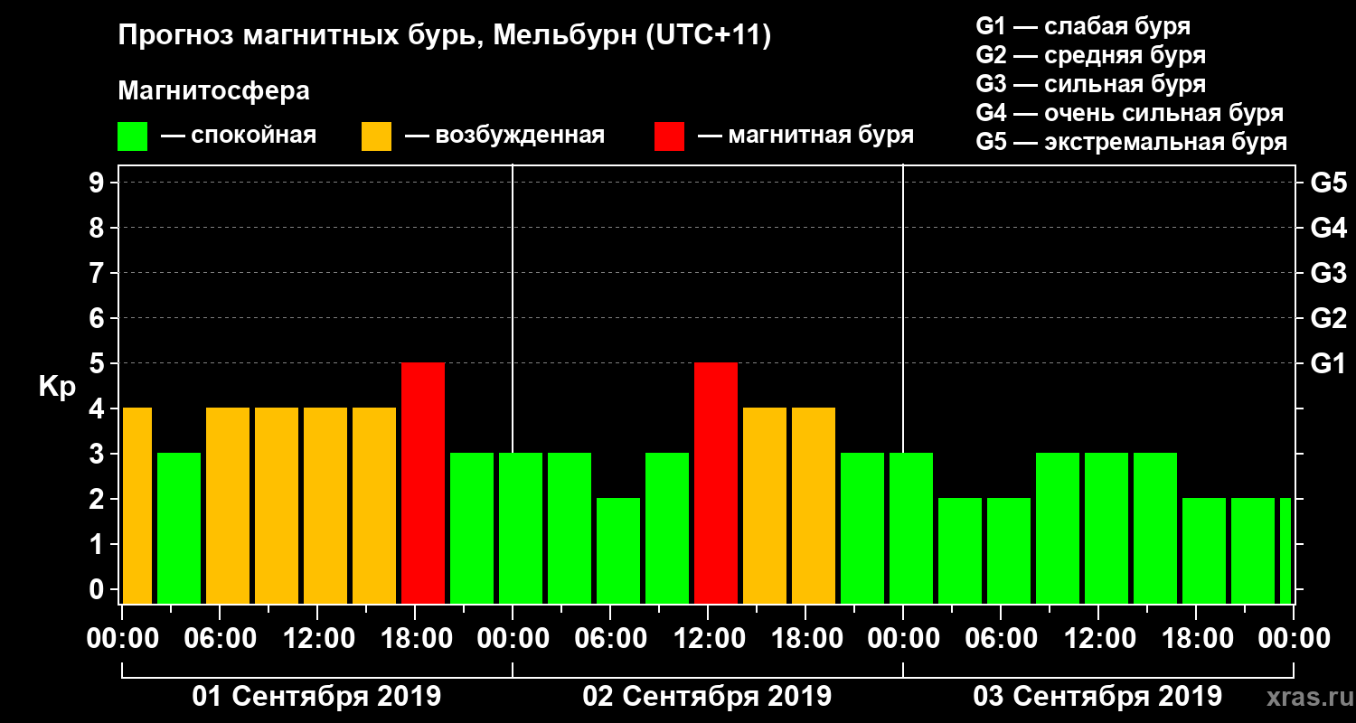Прогноз магнитных бурь в Мельбурне — 1 сентября 2019 года