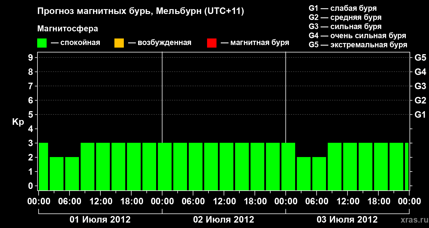 Прогноз магнитных бурь в Мельбурне — 1 июля 2012 года