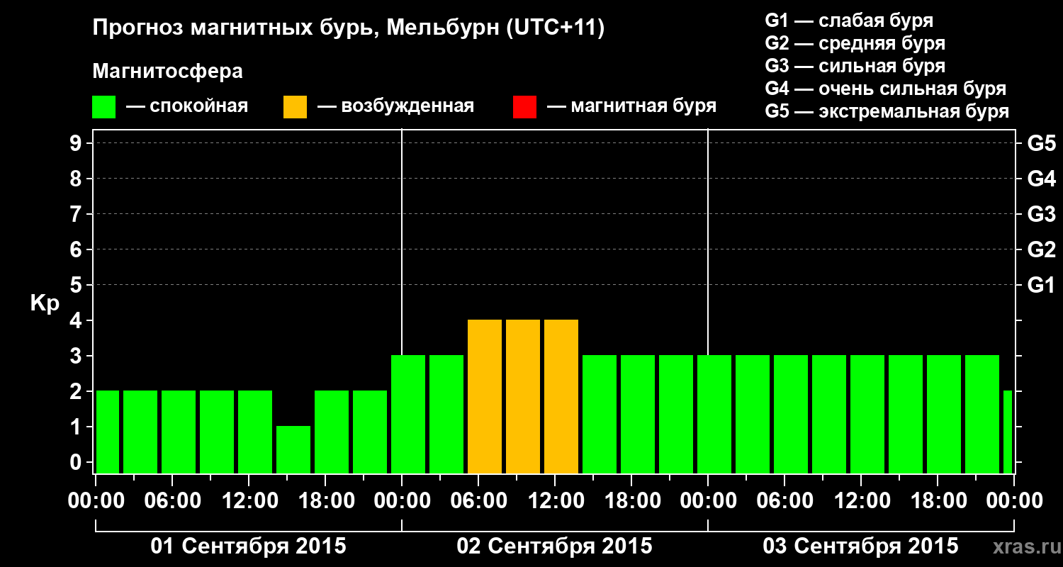 Прогноз магнитных бурь в Мельбурне — 1 сентября 2015 года
