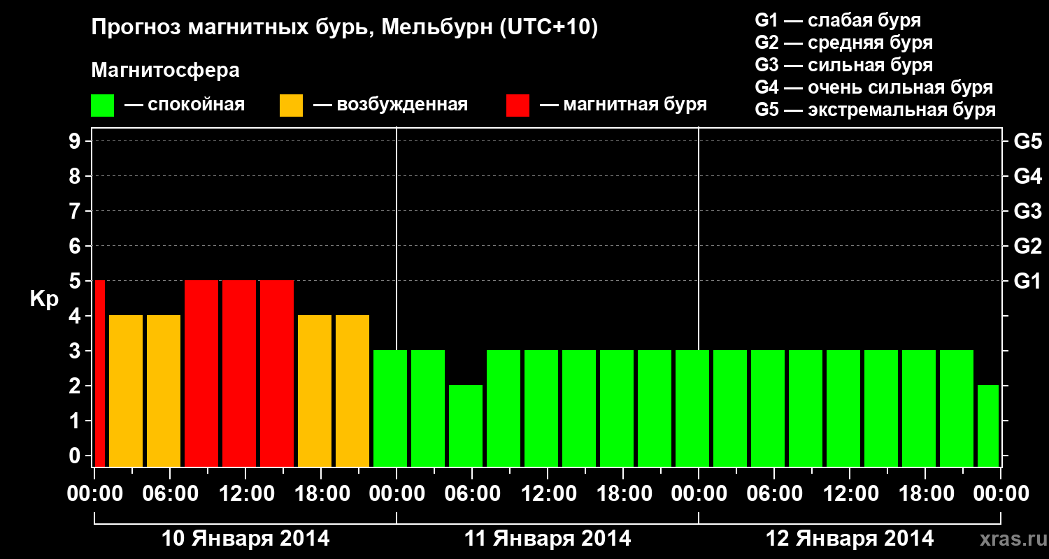 Прогноз магнитных бурь в Мельбурне — 10 января 2014 года