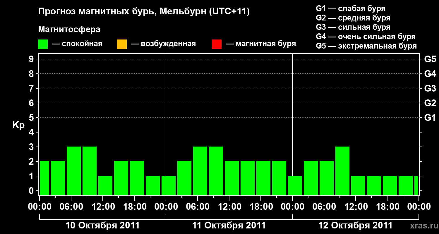 Прогноз магнитных бурь в Мельбурне — 10 октября 2011 года