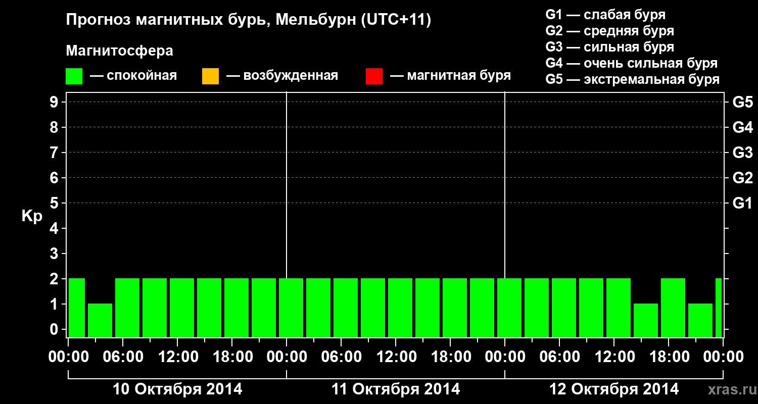 Прогноз магнитных бурь в Мельбурне — 10 октября 2014 года