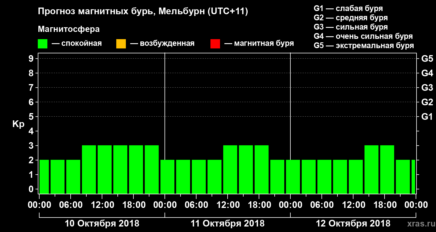 Прогноз магнитных бурь в Мельбурне — 10 октября 2018 года