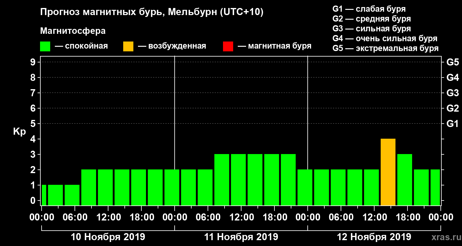 Прогноз магнитных бурь в Мельбурне — 10 ноября 2019 года