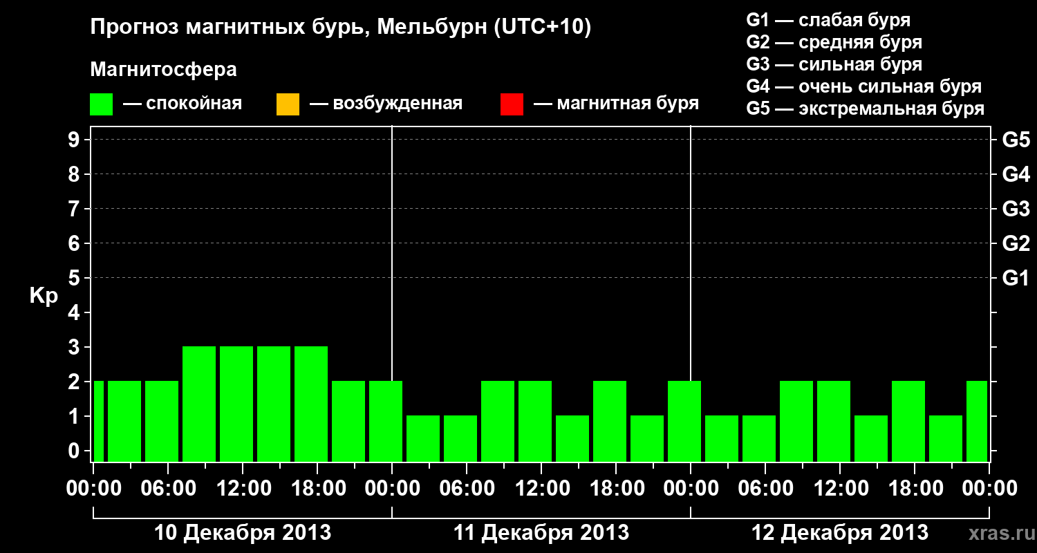 Прогноз магнитных бурь в Мельбурне — 10 декабря 2013 года