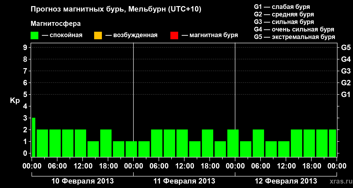 Прогноз магнитных бурь в Мельбурне — 10 февраля 2013 года
