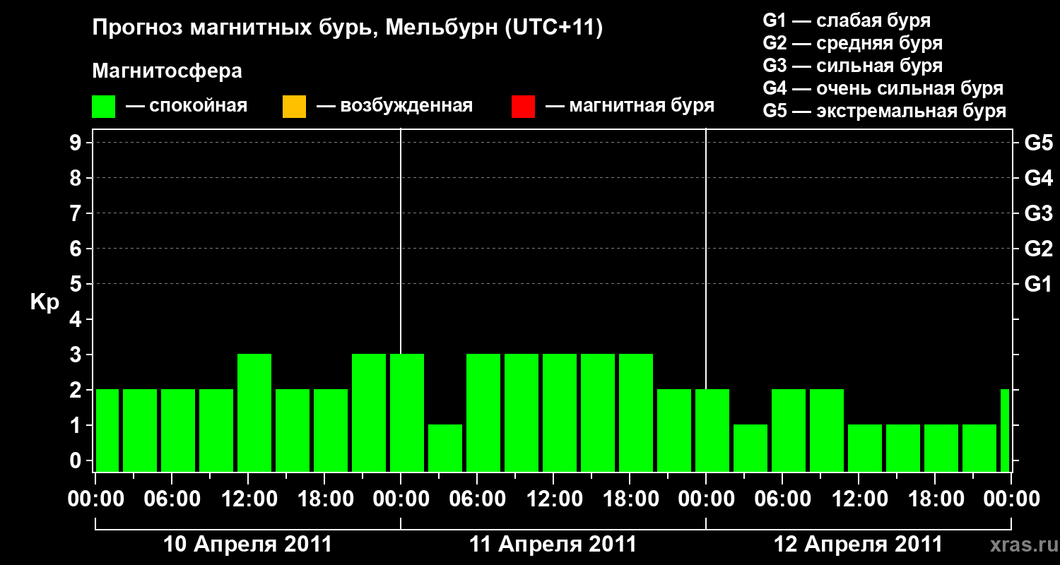 Прогноз магнитных бурь в Мельбурне — 10 апреля 2011 года