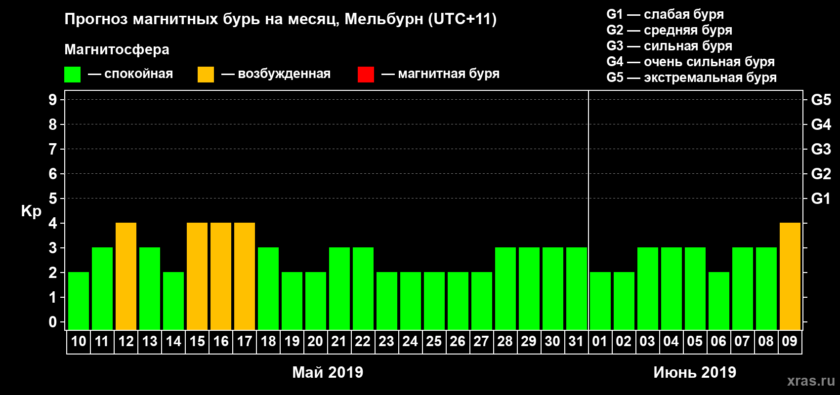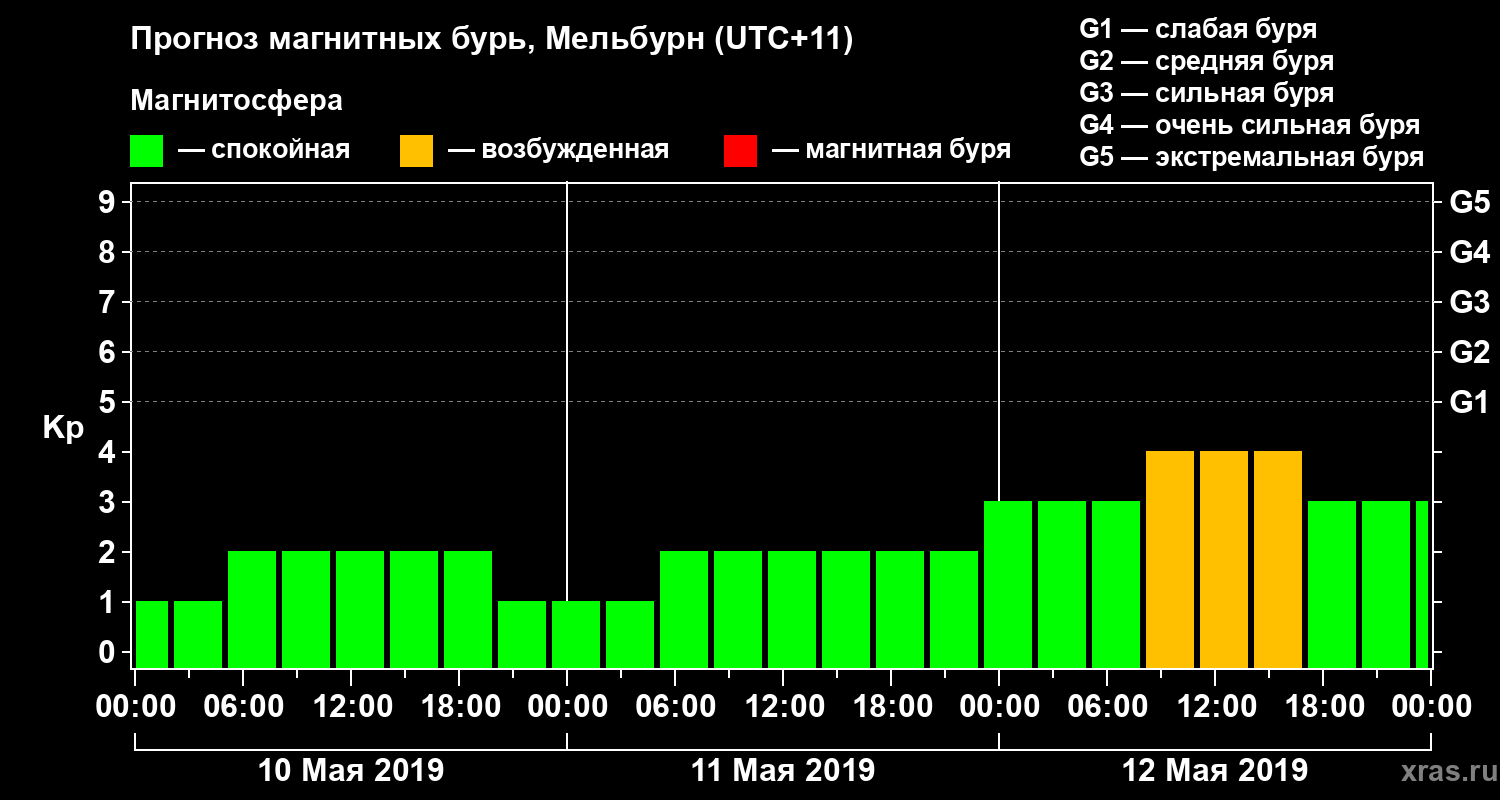 Прогноз магнитных бурь в Мельбурне — 10 мая 2019 года