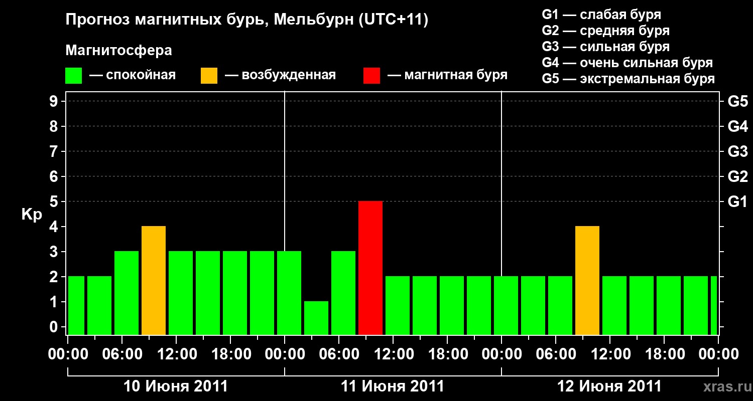 Прогноз магнитных бурь в Мельбурне — 10 июня 2011 года