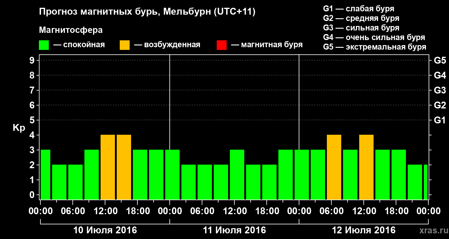 Прогноз магнитных бурь в Мельбурне — 10 июля 2016 года