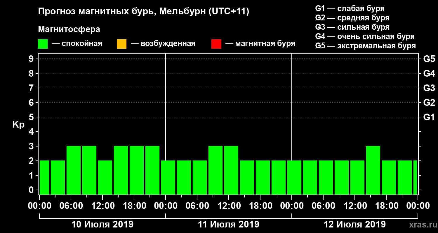Прогноз магнитных бурь в Мельбурне — 10 июля 2019 года