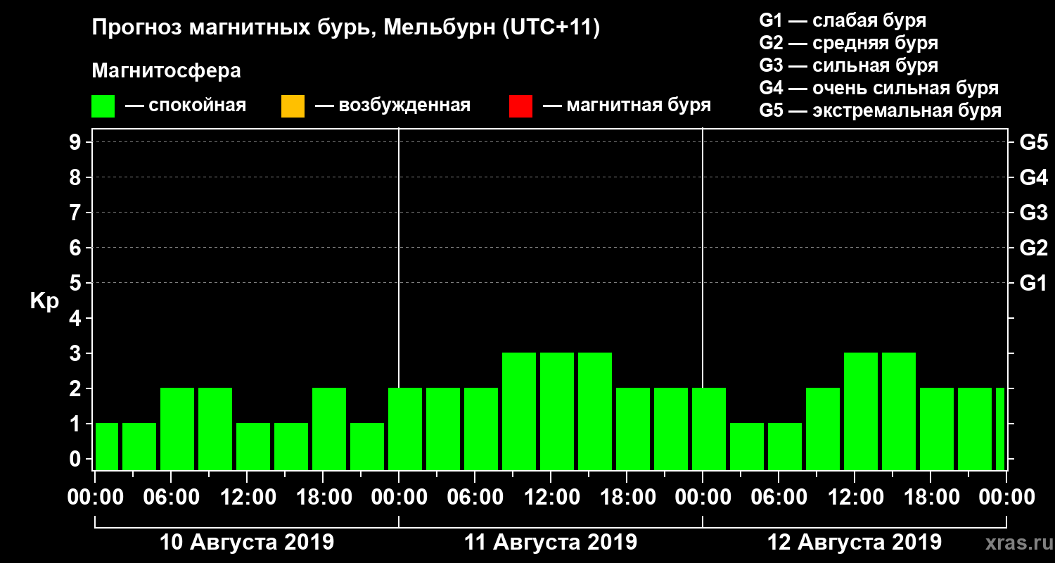 Прогноз магнитных бурь в Мельбурне — 10 августа 2019 года