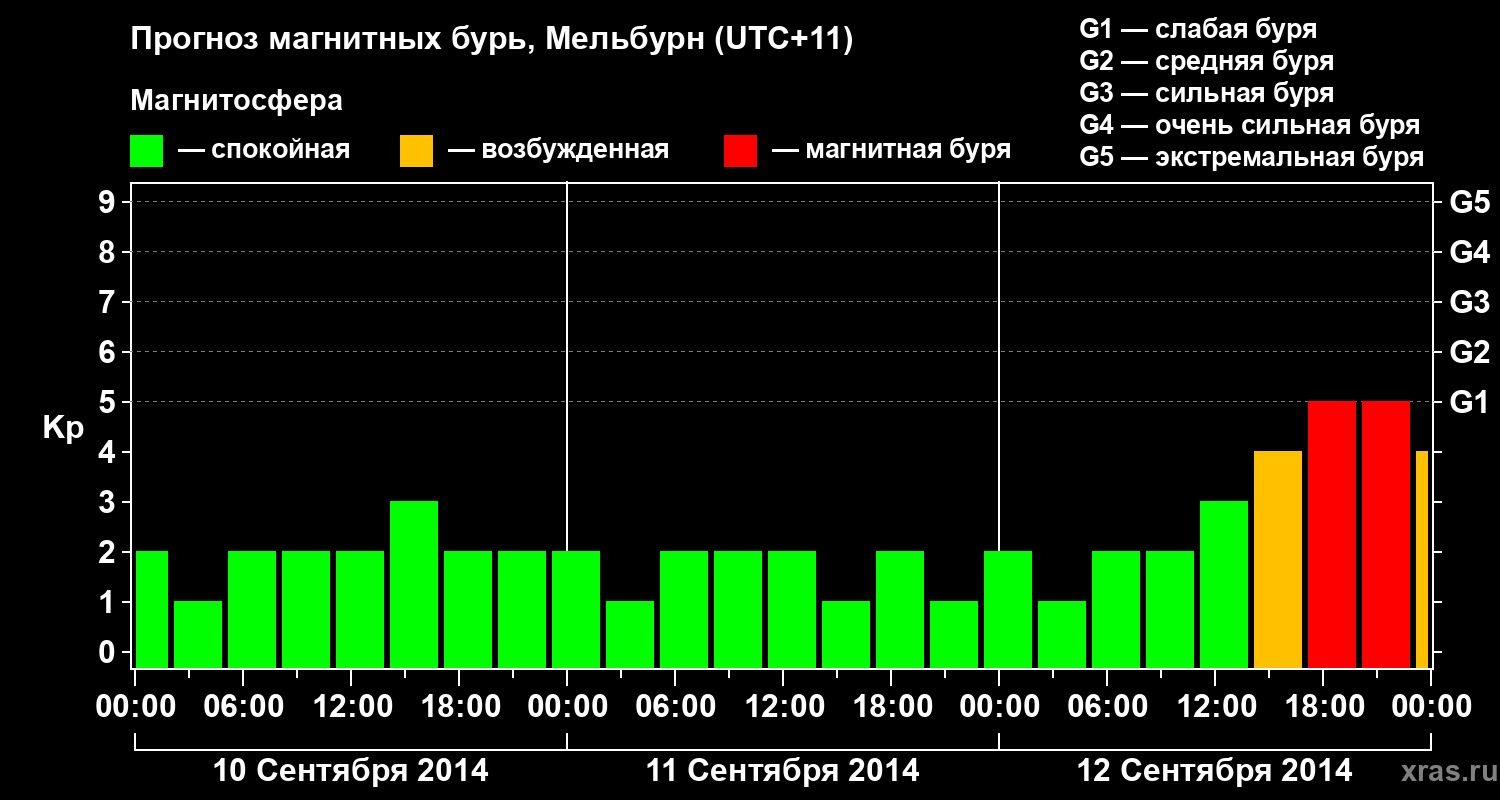 Прогноз магнитных бурь в Мельбурне — 10 сентября 2014 года