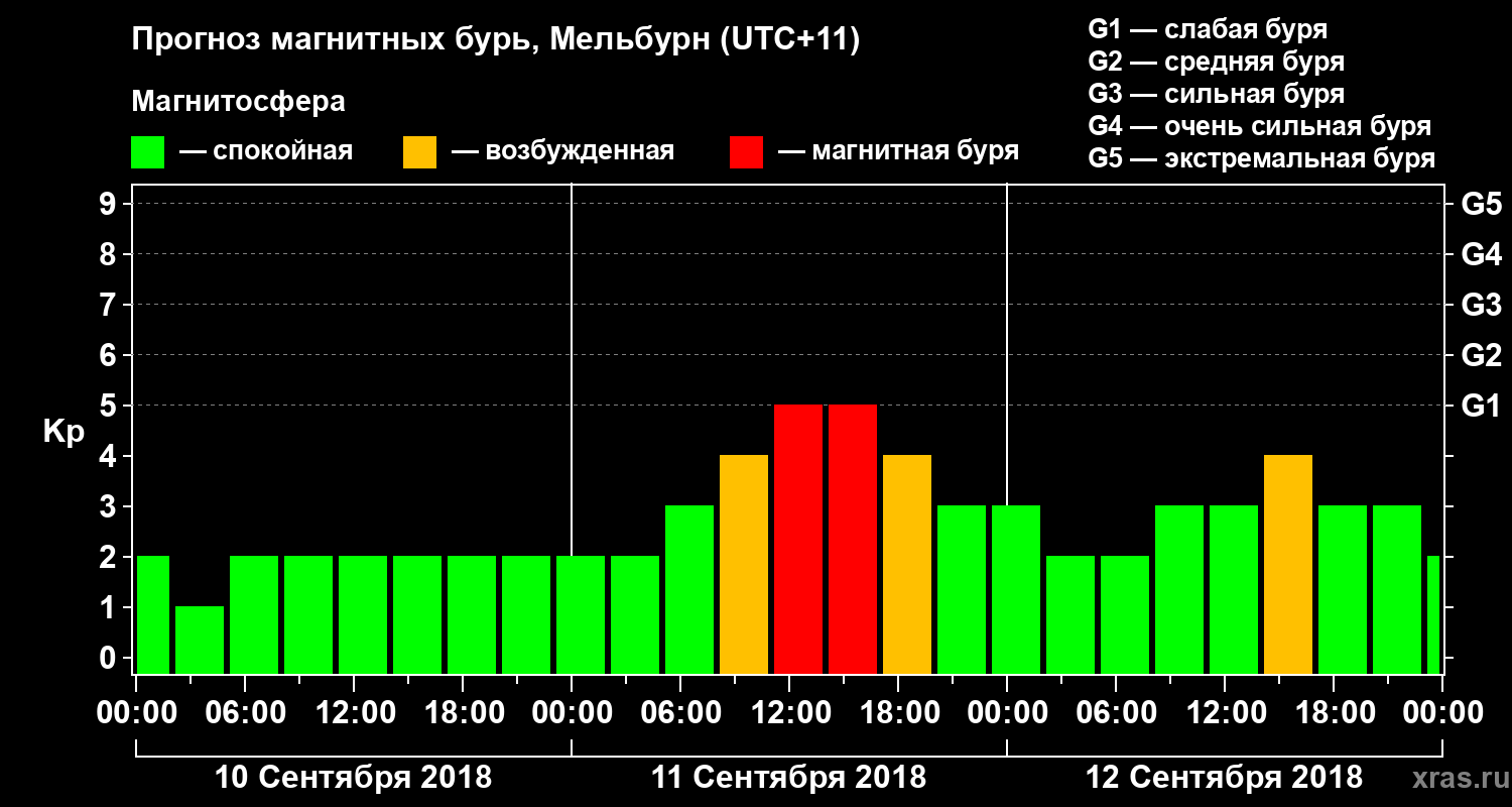 Прогноз магнитных бурь в Мельбурне — 10 сентября 2018 года