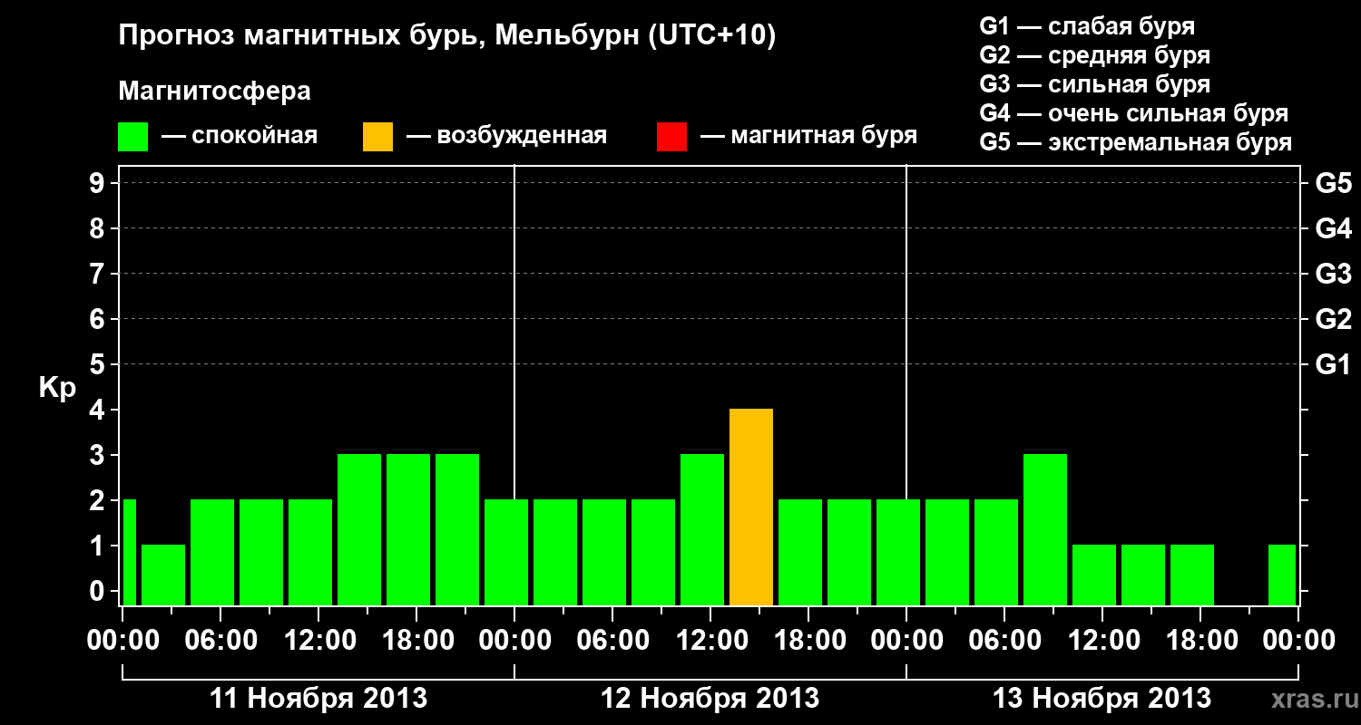 Прогноз магнитных бурь в Мельбурне — 11 ноября 2013 года