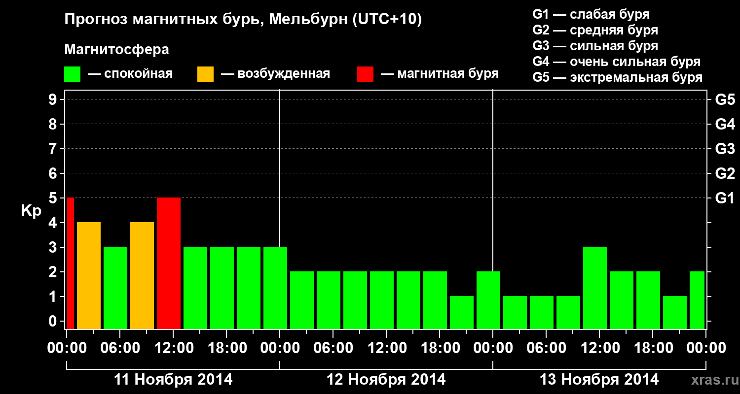 Прогноз магнитных бурь в Мельбурне — 11 ноября 2014 года