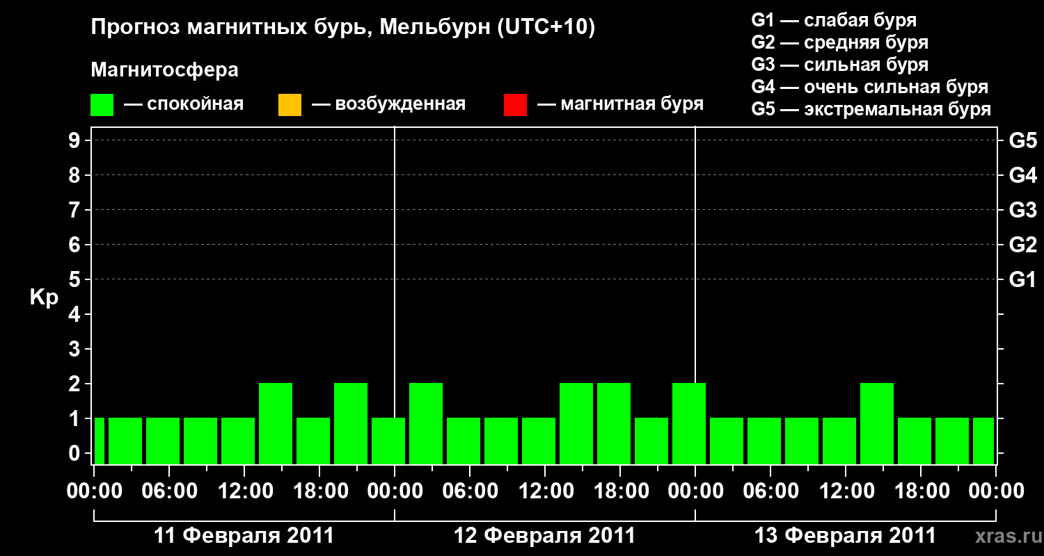 Прогноз магнитных бурь в Мельбурне — 11 февраля 2011 года