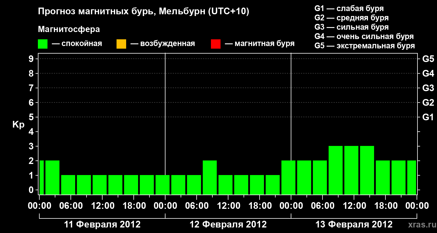 Прогноз магнитных бурь в Мельбурне — 11 февраля 2012 года