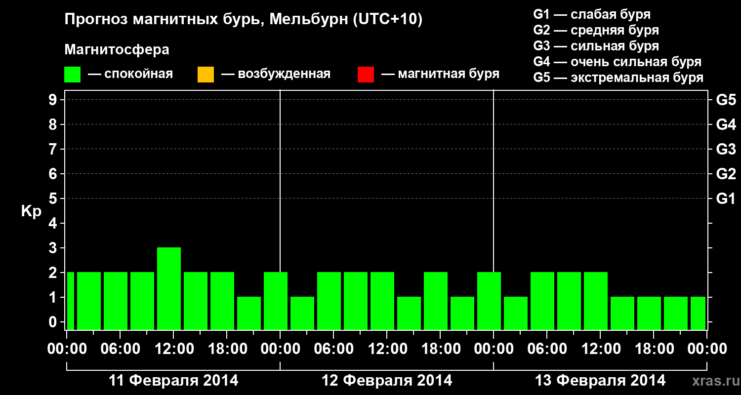 Прогноз магнитных бурь в Мельбурне — 11 февраля 2014 года