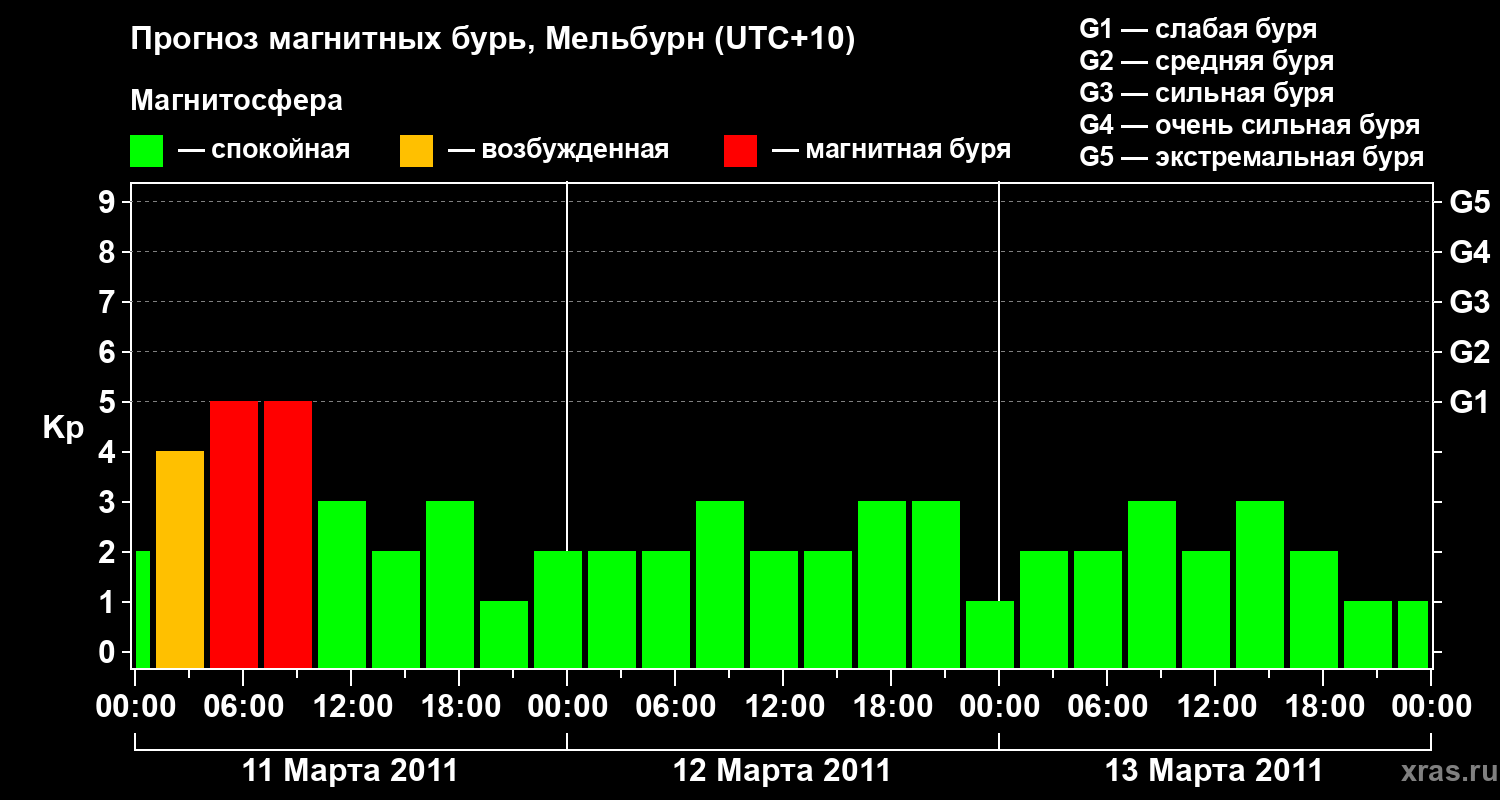 Прогноз магнитных бурь в Мельбурне — 11 марта 2011 года