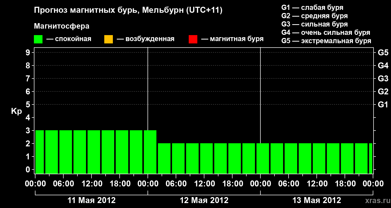 Прогноз магнитных бурь в Мельбурне — 11 мая 2012 года
