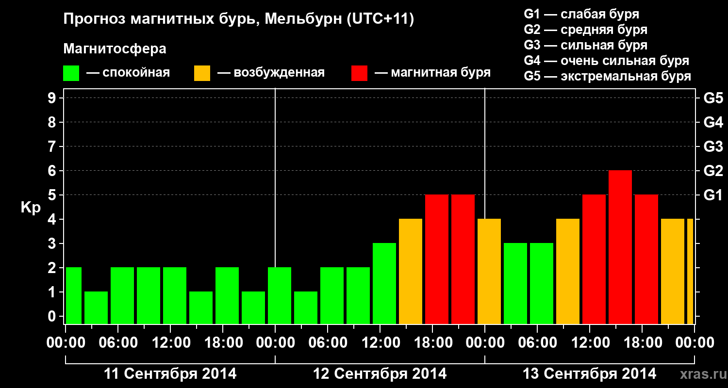 Прогноз магнитных бурь в Мельбурне — 11 сентября 2014 года