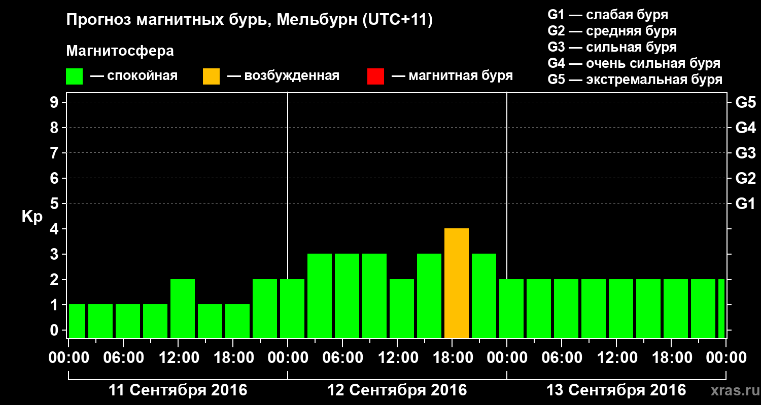 Прогноз магнитных бурь в Мельбурне — 11 сентября 2016 года