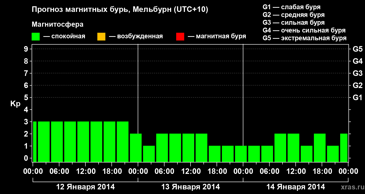 Прогноз магнитных бурь в Мельбурне — 12 января 2014 года