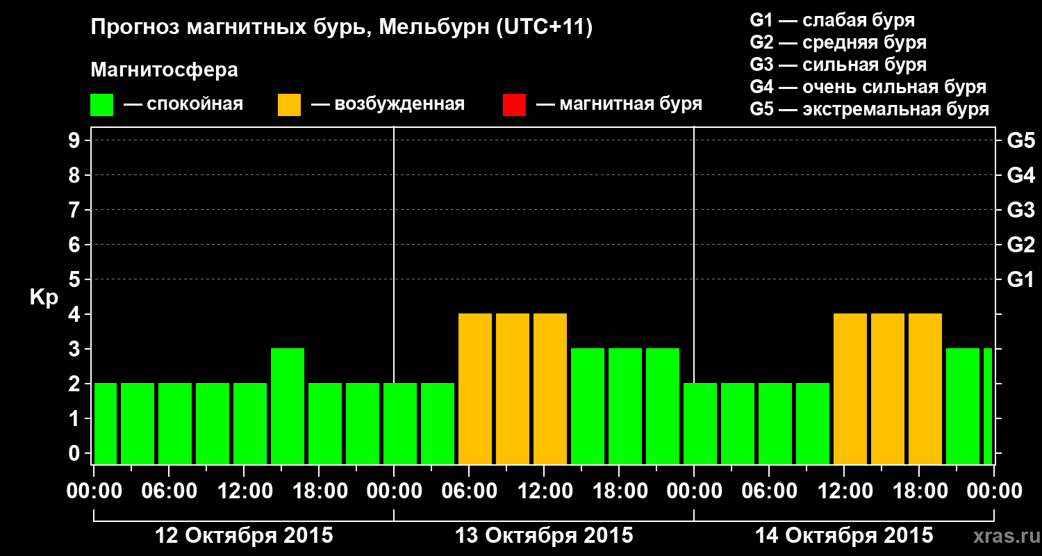 Прогноз магнитных бурь в Мельбурне — 12 октября 2015 года