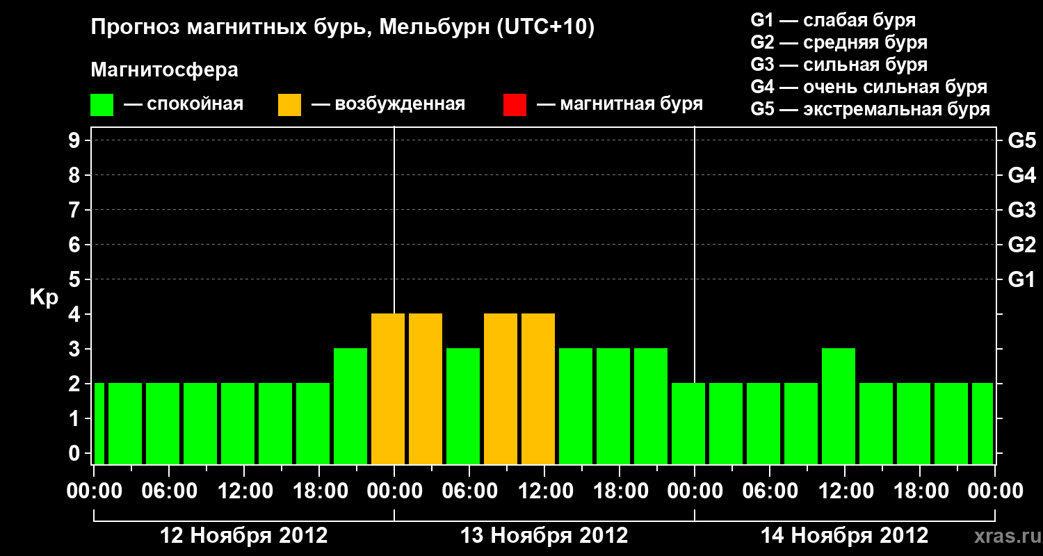 Прогноз магнитных бурь в Мельбурне — 12 ноября 2012 года