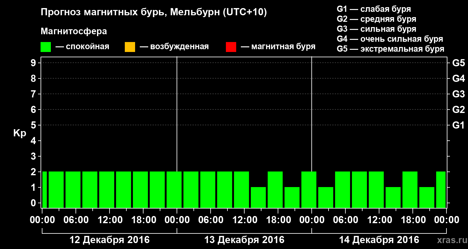 Прогноз магнитных бурь в Мельбурне — 12 декабря 2016 года