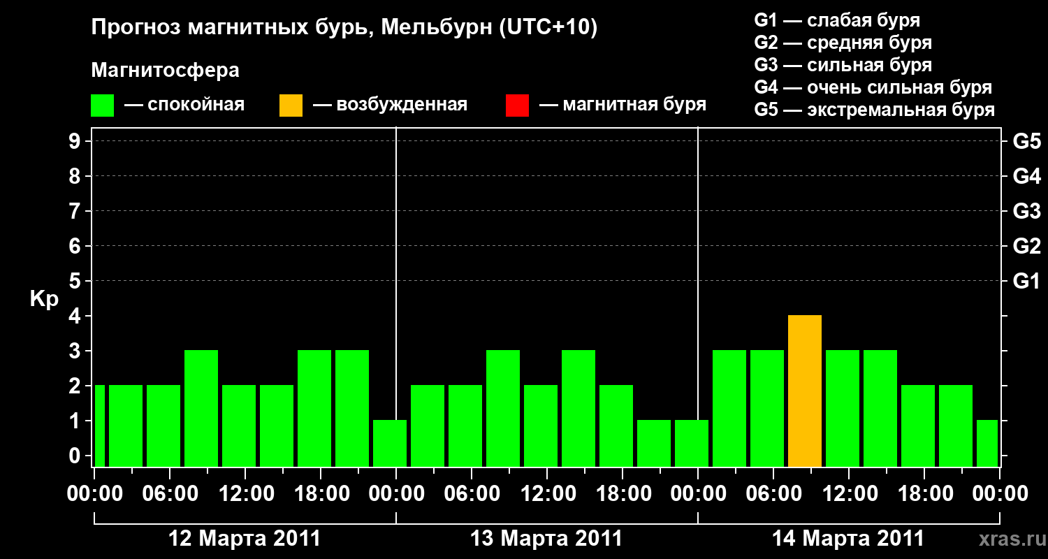 Прогноз магнитных бурь в Мельбурне — 12 марта 2011 года