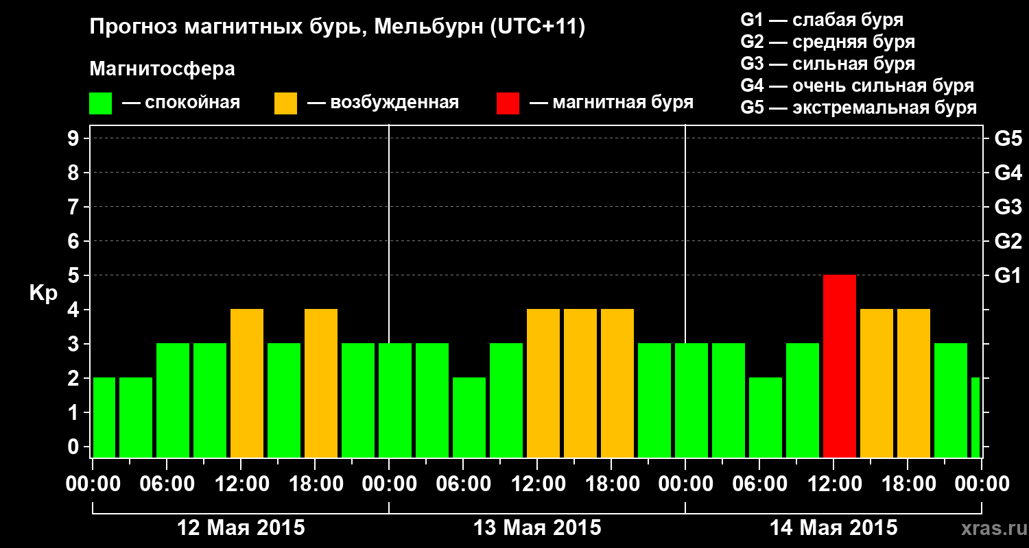 Прогноз магнитных бурь в Мельбурне — 12 мая 2015 года