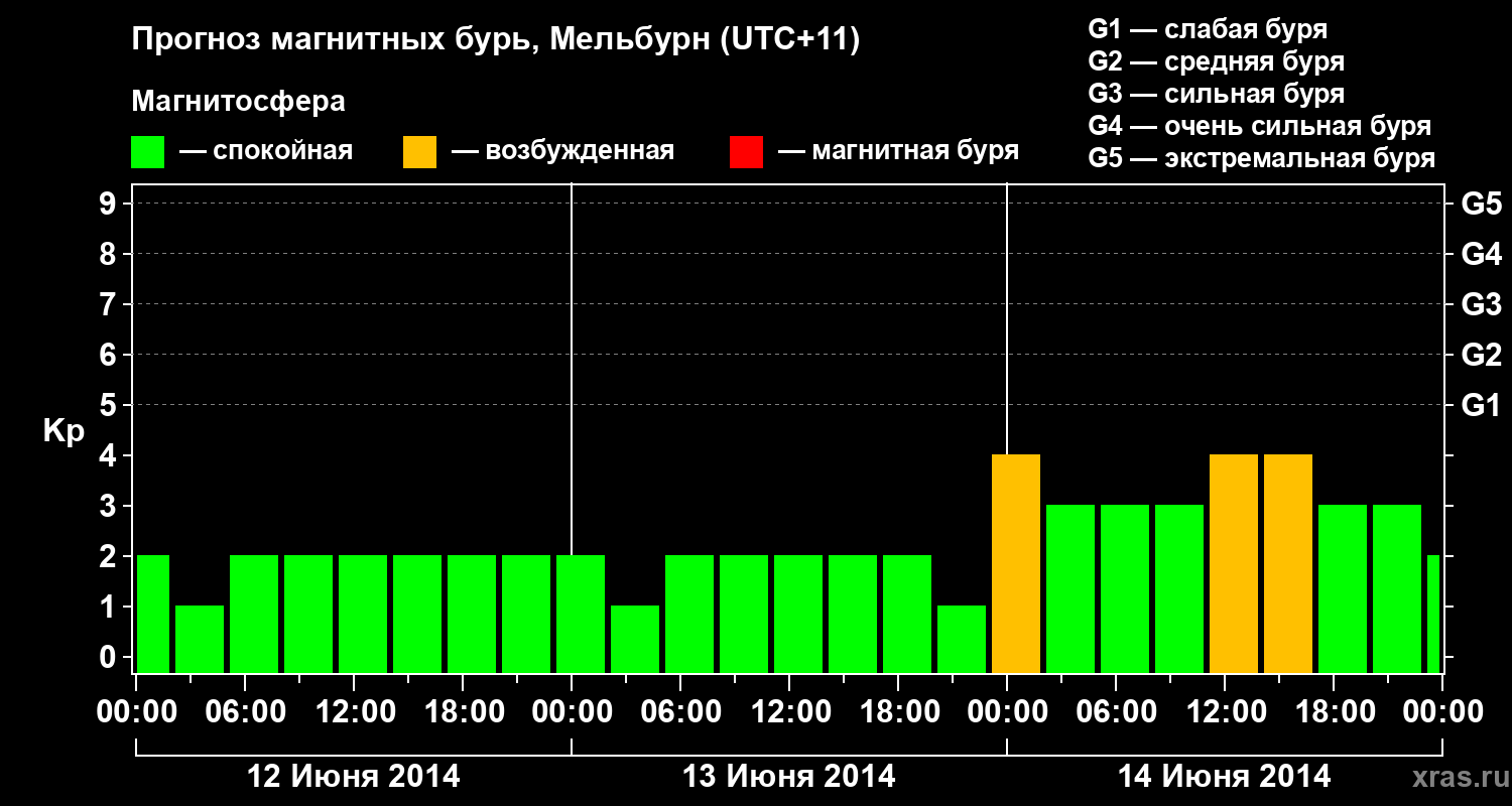 Прогноз магнитных бурь в Мельбурне — 12 июня 2014 года