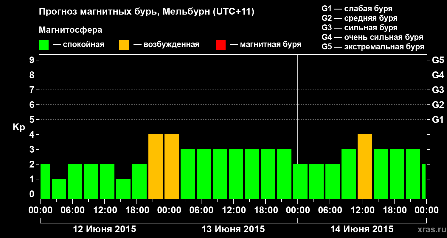 Прогноз магнитных бурь в Мельбурне на 12 июня 2015 года